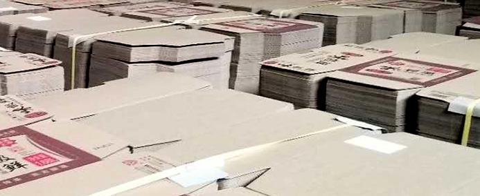 瓦楞纸箱的直接柔印纸箱生产的工艺流程为:瓦楞纸板生产→纸板的直接印刷→模切开槽→贴合(钉箱)→包装瓦楞纸板生产工艺的基本原理:柔性版直接印刷是使用柔性印版,通过网纹辊传递油墨的方法进行印刷,所用的印版图文部分凸起,印刷时网纹传墨辊将一定厚度的油墨层均匀地涂布在印版的图文部分,然后在压印滚简给予的印刷压力的作用下,图文部分的油墨层转